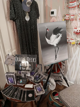 Karen displayed and sold dozens of original paintings and drawings, a good portion of them being bird portraits (created specifically for her birds oracle deck!), as well as a succulent series she painted just for this show. Customers really were getting some incredible deals for some of these detailed originals! She was also pleased to add her old work into the mix as well, artwork that otherwise sits around in storage and takes up space, rather than being appreciated in someone's home! This was the most successful event Karen has done to-date, and she certainly intends to come back next year with new artwork in tow! Karen also gives a huge shoutout and thanks to her partner who was an immense and instrumental help through the whole process of setting up, selling, and taking down her booth--it's a huge venture!
