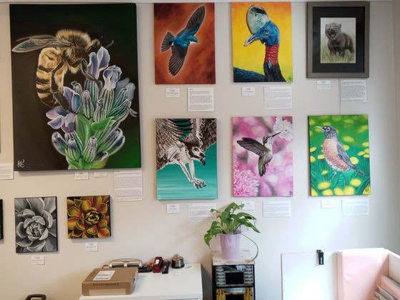 At last, Karen returned to beloved Downtown Louisville for their First Friday Art Walk! This time it was the REMAX office that allowed her to showcase her artwork on their walls from mid July through mid September. What an honor it was! Karen focused on installing mostly her animal artwork, with a few succulent artworks thrown in. It's Karen's passion to connect viewers with the natural world, so she carefully crafted descriptions of each animal featured: What makes each animal extraordinary? How can we reflect on each animal's qualities and survival strategies and learn to empower ourselves with it?